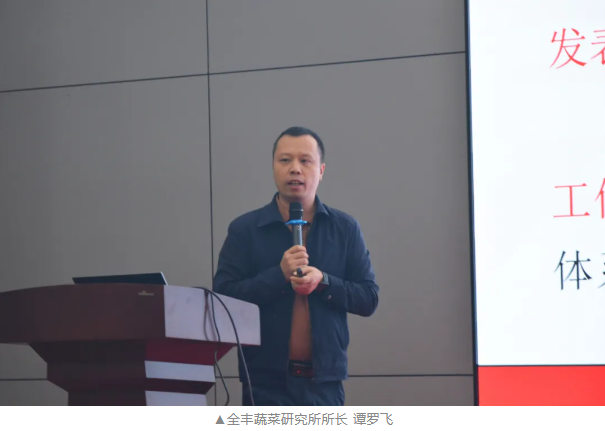 全丰蔬菜研究所所长谭罗飞以《辣椒高产管理技术》为主题,从辣椒生育周期、品种特性及常见问题切入,深入剖析了促根壮苗、控旺促花、保果提质等关键环节的技术要点。他指出:“全丰方案通过‘促根-控苗-保果-促转色’全链条管理,可显著增加有效分枝数、提升坐果率,最终实现产量与品质双突破。”现场展示的多组对比数据与田间实拍效果图,引发与会者热烈讨论。