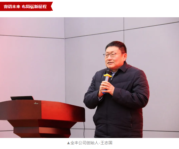 会议尾声,全丰创始人王志国发表了重要讲话。他对2025年公司的优秀表现给予了充分肯定,公司产值、利润、产量、销量等关键指标大幅上扬,发展态势强劲。同时,他也具体分析了当下局势,指出行业竞争白热化、环保要求趋严等挑战。面向2026年,他精准布局战略与重点工作:坚持创新、推行全员营销、坚守质量底线、引进高端人才,为公司发展指明方向、凝聚奋进力量。